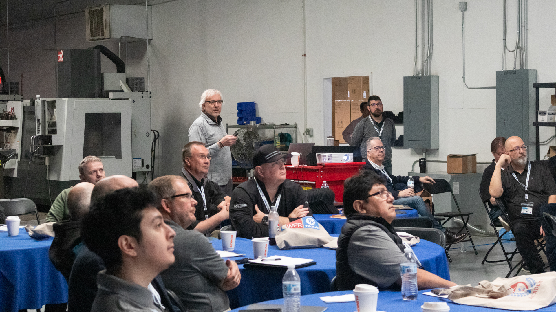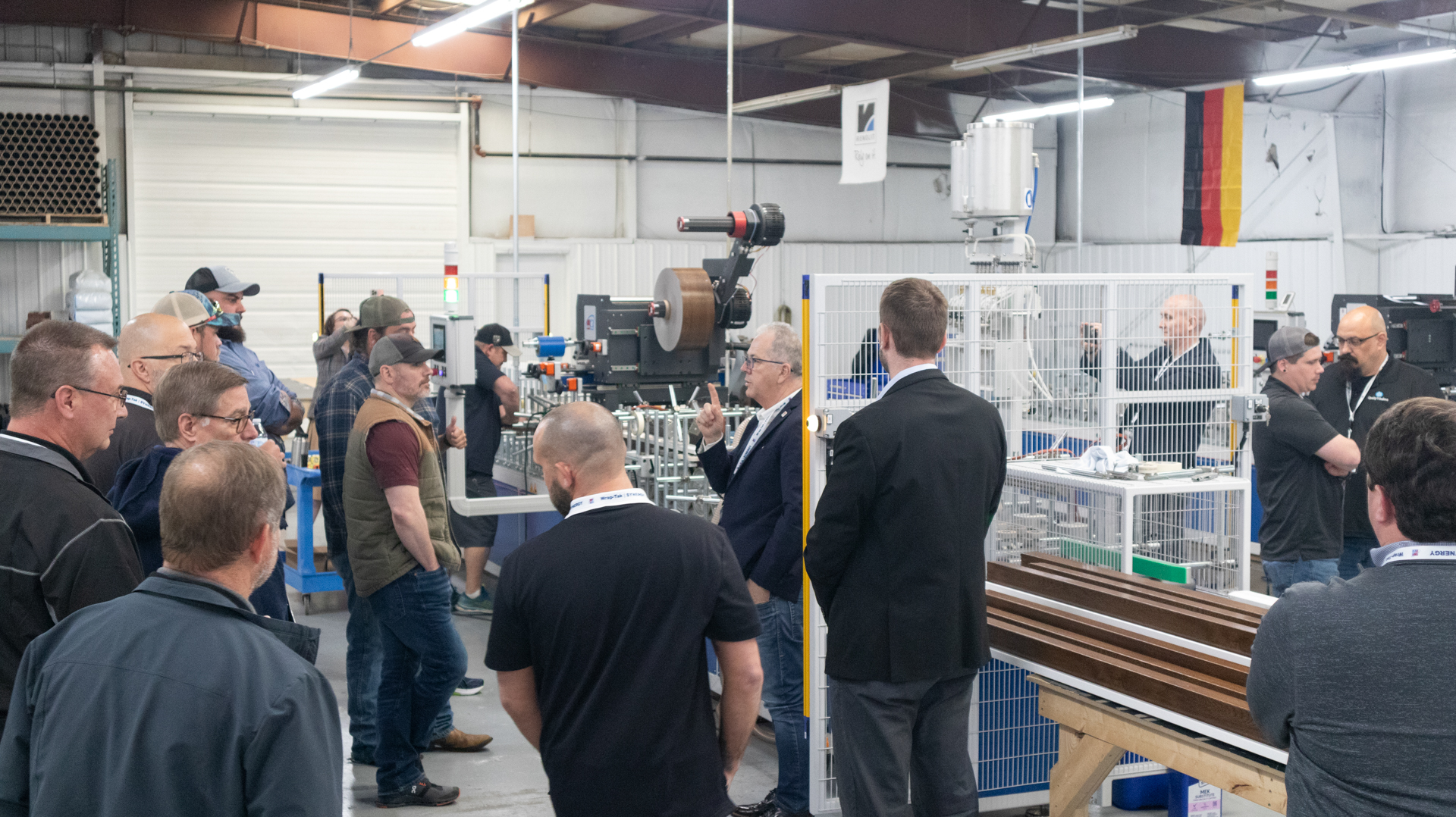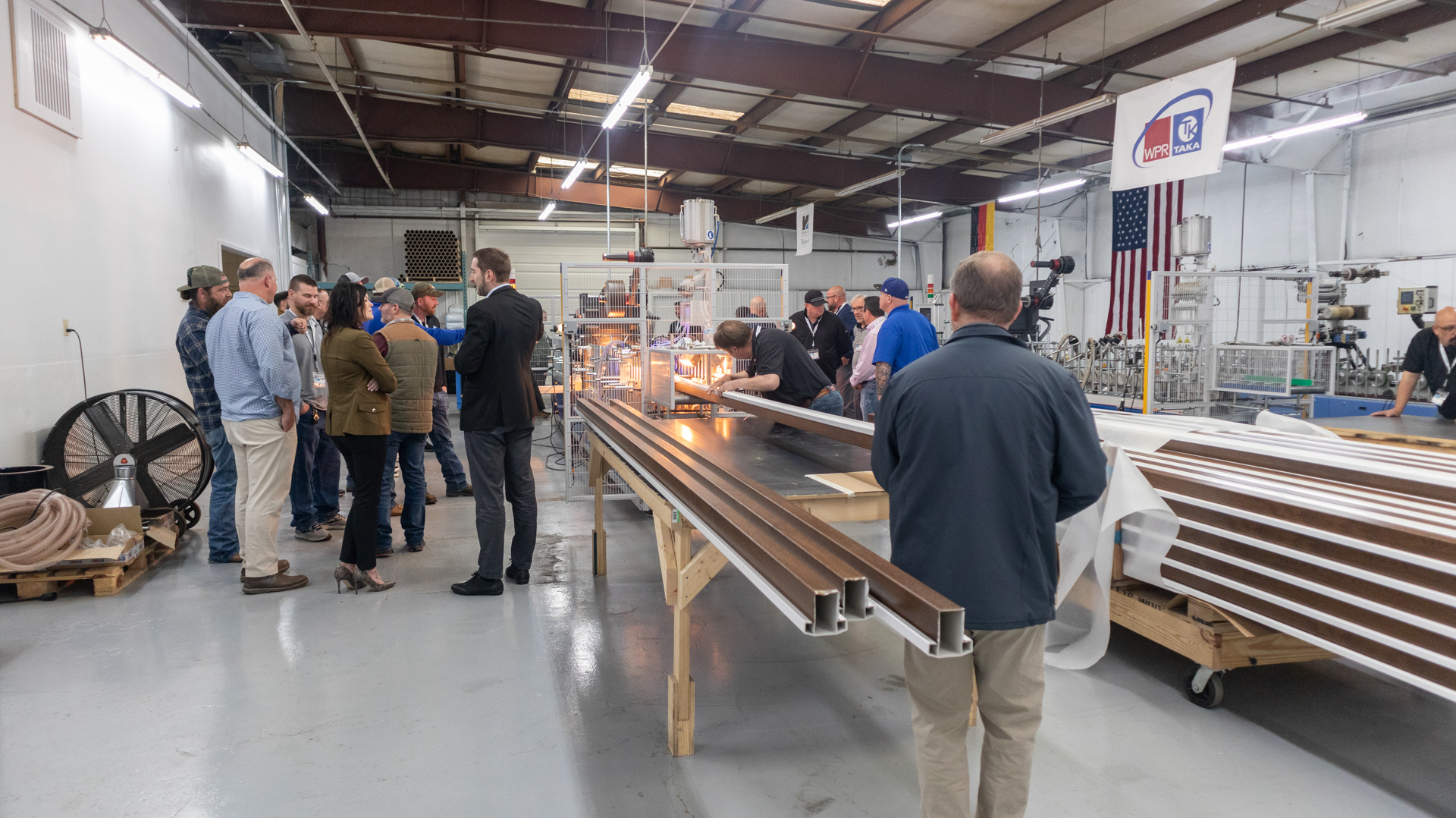 After a delicious catered lunch guests got a demo of Blue’s second TAKA profile wrapping machine. Mr. Carrer pointed out important steps in primer setup, maintaining consistent temperatures for glue, and more as the machine ran profiles. Guests were able to see a TAKA-WPR machine in action and gain expert advice from Ray Rice, Technical Director at Wrap-Tak Inc. the only company to provide machinery packages of TAKA-WPR profile wrapping machines and adhesives.
