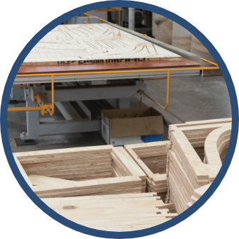 Our frames start with the finest raw materials. Our wood is sustainably sourced from both domestic and international regions known for their quality. Before cutting we utilize software to create “nested” layouts. This optimizes part placement so every possible part of the wood panel can be used. Paired with CNC cutting this saves time and materials.